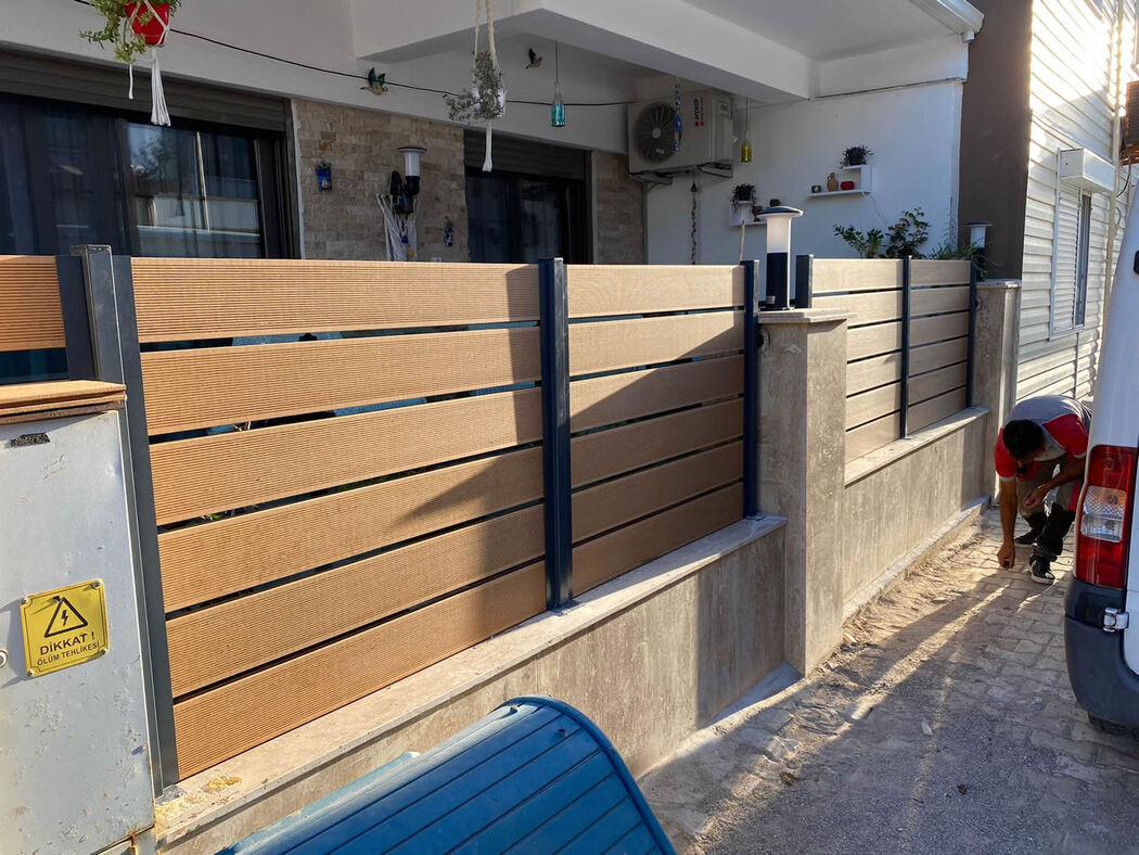 Yatay Uygulanan Kompozit Ahşap Paneller ve Fırın Boyalı Galvaniz Direkler