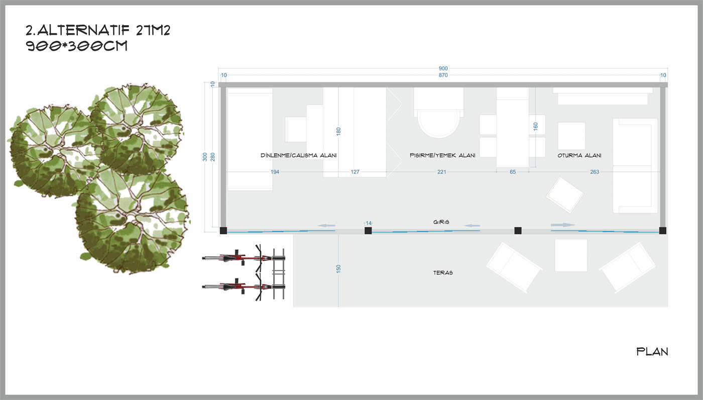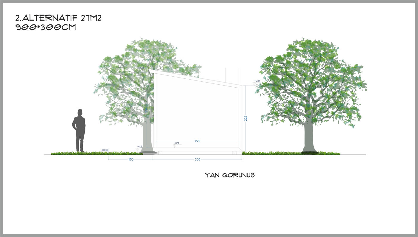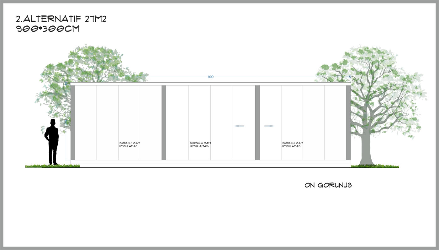 3m derinliğinde 6m genişliğinde toplam 18m², yerden 60cm yüksek taban alanı, 230cm yüksekliğinde tavan